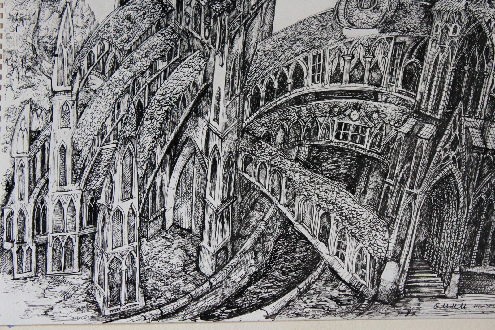 In September 2003 he held an exhibition entitled “Lucubrations” at the Triclinium Arts and Dining Club in Shropshire. These architectural fantasies were painted in the ten years between 1993 and 2003. They were inspired by the artist’s journeys all over the world as one of the chief travel writers on the Financial Times. They were often painted at night as an antidote to daylight hours spent in historical research.